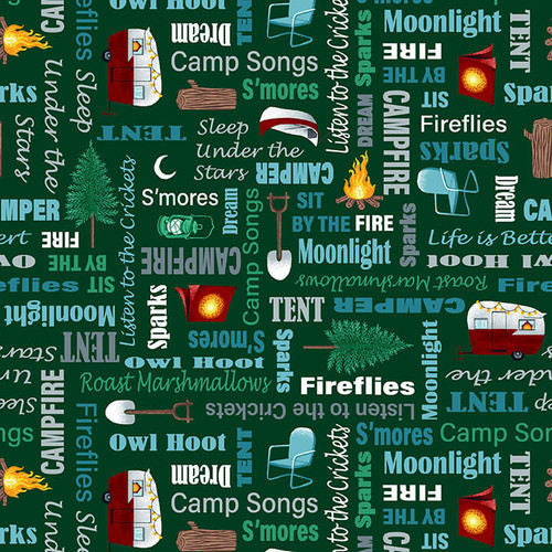 Beneath the Stars - 6847-66 Forest Green Campsite Words - Studio E Fabrics